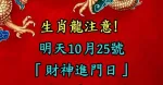 生肖龍注意!明天10月25號「財神進門日」一定要穿這顏色,財神保你正財橫財進家門!