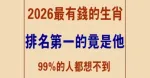 2026年最有錢的5個生肖,排名第一的竟然是它,99%的人都想不到!