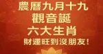 九月十九觀音佛誕,60年一次!觀音菩薩顯靈,4生肖受菩薩庇佑,喜事一件接一件,大發橫財獎,再不接就晚了~