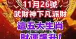 11月26號,武財神下凡派財,這五大生肖財運飆升! 快來接財