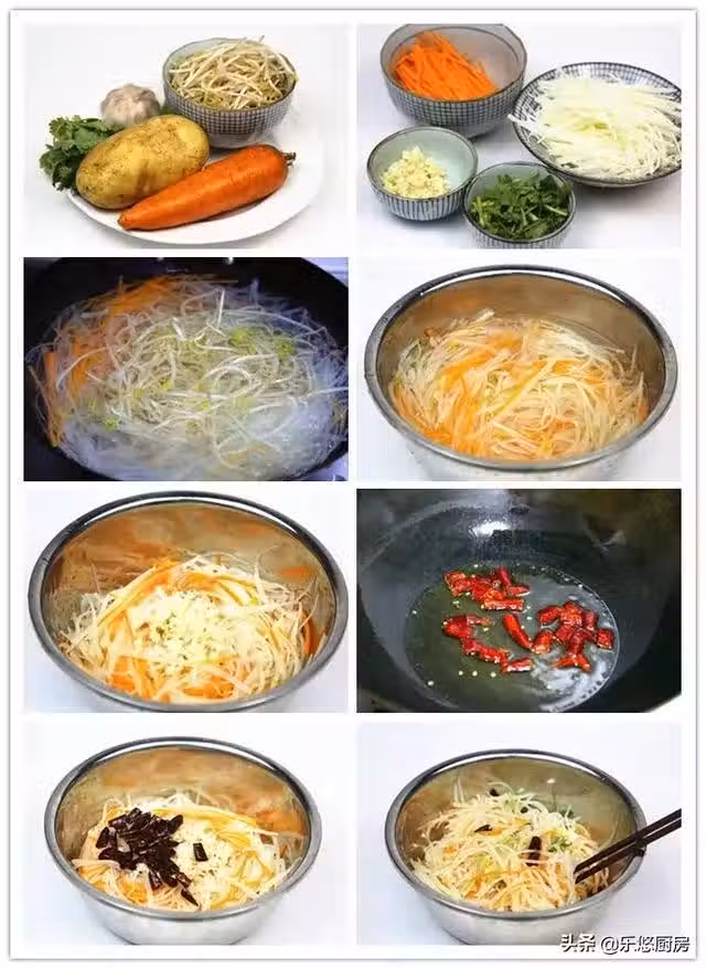 第八步:把香菜段放入盆中,再倒入3勺白醋,幾滴香油。最後拌勻即可裝盤上桌。