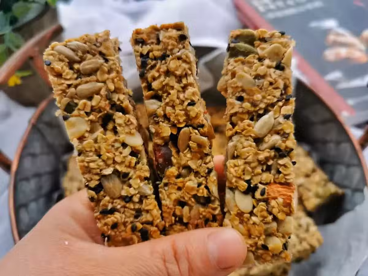 這道燕麥能量棒,用烤箱、微波爐都可以做,做法很簡單,所有食材拌一拌就可以了,雖然沒有放糖,但是有果乾和香蕉的甜味,外酥裡軟,特別好吃。