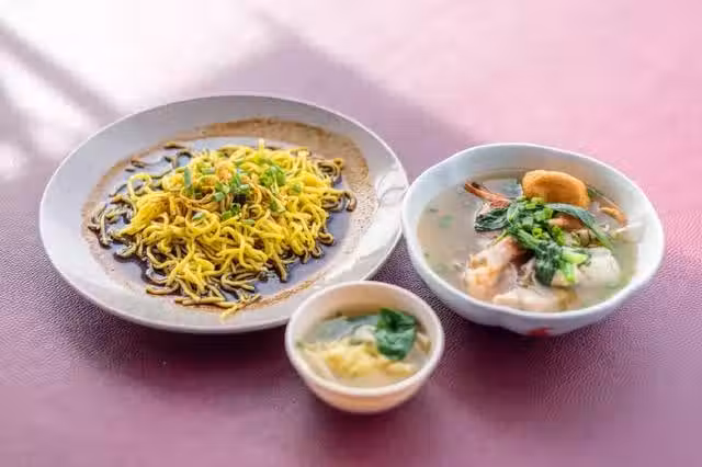彈弓面是當地特色小吃,面彈彈的配上一大碗海鮮,價格不足十元,更有當地特色的皮蛋餃,餡料用皮蛋和蝦肉做成,美味無比。 此外,在馬來西亞一個小城,大部分都是華人,到處都華人美食!