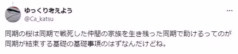 「說起《螢火蟲之墓》的『海軍上尉之子』這個設定,其實破綻還挺大的啊。畢竟戰死的話,消息絕對會傳到家屬耳裡,也會發給撫恤金。更何況爸爸需要長期離家,也肯定會拜託同梯照顧家人。清太真的沒有給人『海軍士官的兒子』的感覺。」