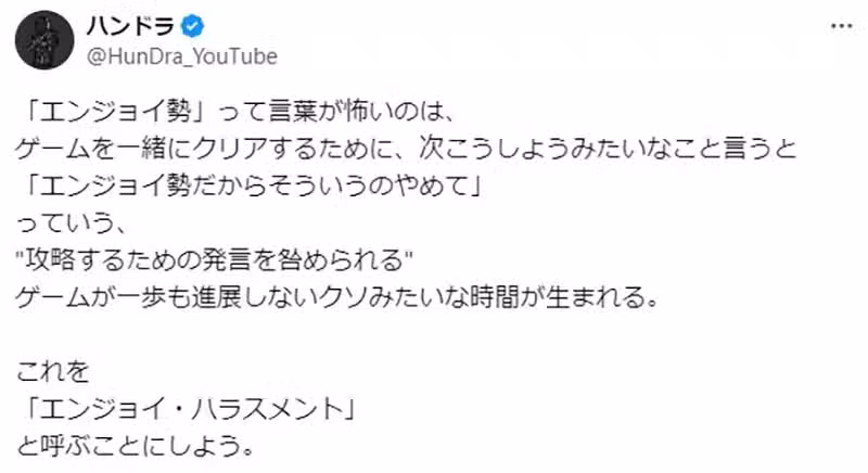 這為暱稱「ハンドラ」的日本X網友,最近聊起了某些休閒玩家明明一直在遊戲當中浪費時間,卻不允許認真玩家指點的現象。他將這種現象稱為「休閒玩家騷擾」,引爆熱烈反響!