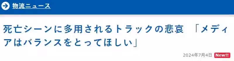 報導訪問了一位在日本靜岡縣經營物流公司的老闆,他抱怨創作作品當中,經常將卡車塑造成車禍的兇手,嚴重破壞卡車和物流業界的名聲……