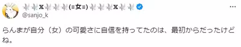 「女亂馬當初就算被看到裸體或是被揉奶,也想說自己本來是男人,所以根本不覺得有什麼,也不會尖叫之類的。但是後來卻會尖叫了耶……這樣想起來,我真的看了一部很猛的漫畫啊。」