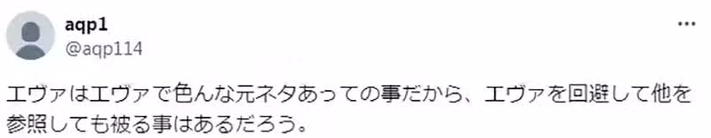 「到底是單純受到EVA影響呢,還是製作組一開始就打算模仿EVA呢,這種界線很難劃分啊。」