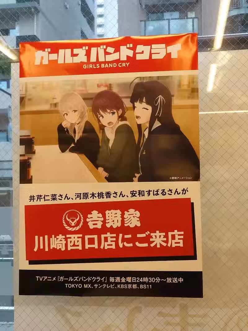 《少女樂團吶喊吧》聖地吉野家店面進行大改裝,來不及朝聖的粉絲髮出哀號了