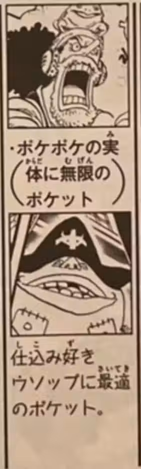 所以烏索普必然會獲得新的能力。尾田在SBS中提到了最合適的烏索普的是口袋果實,可是這顆惡魔果實在白鬍子海賊團旗下一個隊長那,這意味著是不可能有的,那墨墨果實就是最合適了。