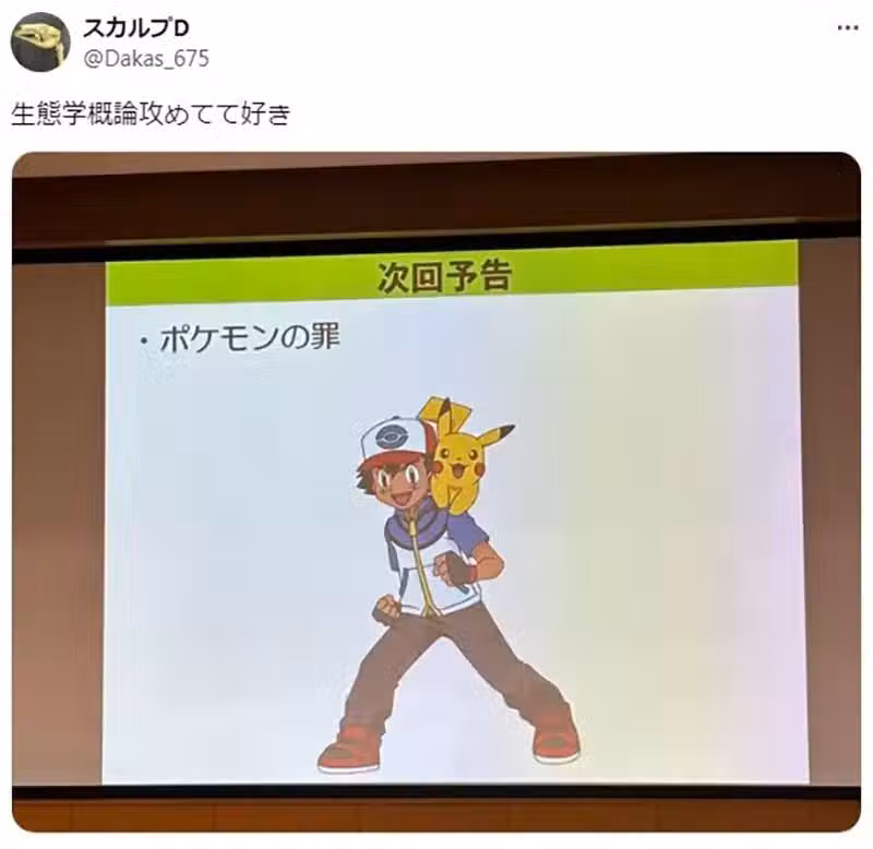 有一位暱稱「スカルプD」的日本X網友,最近在上生態學概論這門課的時候,發現老師竟然以《寶可夢》系列作品為主軸,講述起了「寶可夢的罪過」,讓他大為震驚!