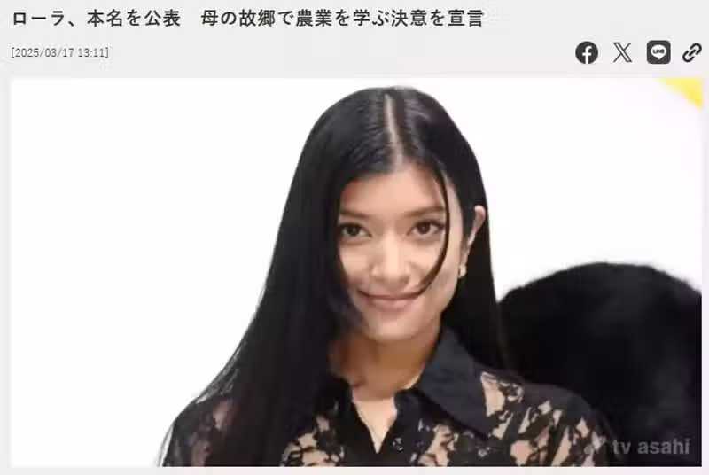 日本知名女性模特兒蘿拉(ローラ),在這個星期一(3月17日)於IG發了一篇很長的文章。先是公布了自己的本名是「佐藤えり」,接著開始闡述起她對於日本農業的現狀,以及糧食自給率低落的擔憂。最後又表示她決定在接下來的一年,每個月前往母親的故鄉新潟縣學習農業,特別是自然農法的相關知識。