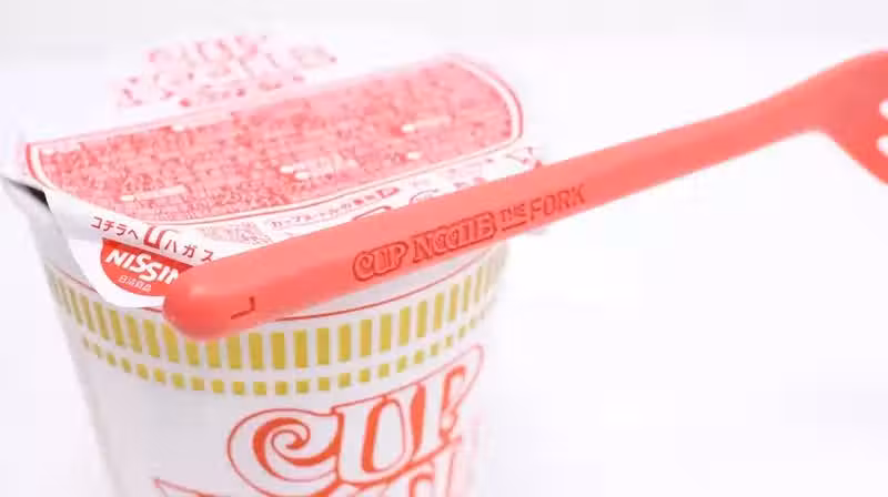 《日清杯麵專用叉》不識貨的網友痛批拿到歪掉的叉子,下一秒馬上改口稱讚太神了