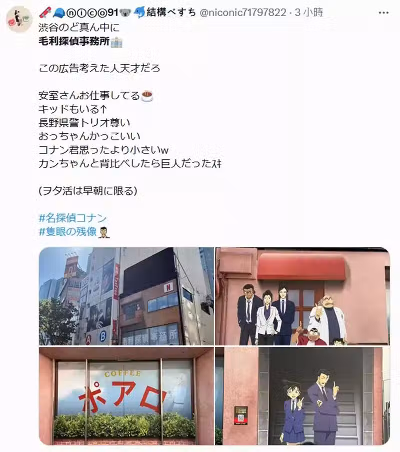 圖片來自:@niconic71797822圖片來自:@niconic71797822圖片來自:@niconic71797822圖片來自:@niconic71797822圖片來自:@niconic71797822以上就是這次跟大家分享的相關內容,螢幕前不會那麼剛好有人正好就在日子,而且人就在澀谷附近吧?不會那麼巧吧~哈哈(羨慕)日本,廣告,劇場版,青山剛昌,澀谷,Netflix,網飛,名偵探柯南獨眼的殘像,毛利偵探事務所部分資料來自網絡 ( NetflixJp )