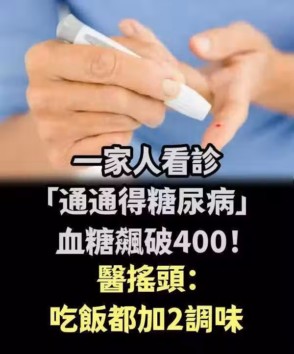一家人看診「通通得糖尿病」 血糖飆破400!醫搖頭:吃飯都加2調味