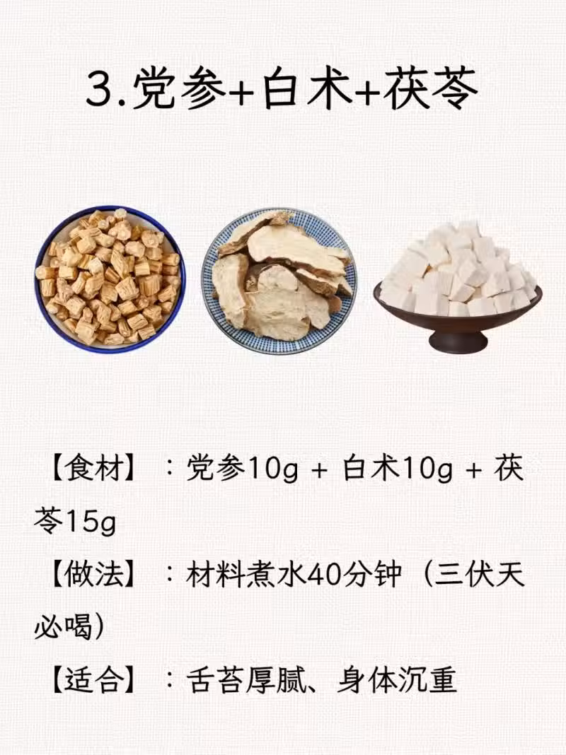 3. 黨參+白朮+茯苓:健脾祛濕,調理脾胃虛弱