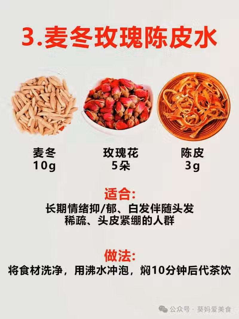 3. 麥冬+新會陳皮+平陰玫瑰: