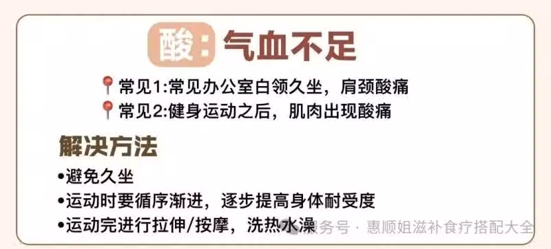 表明經絡是通的,但是氣血相對不足,適當的運動調和局部氣血可以有效改善酸的症狀。