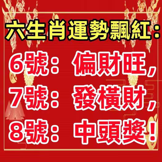 六大生肖運勢飄紅:8月6號偏財旺,7號發橫財,8號中頭獎!!