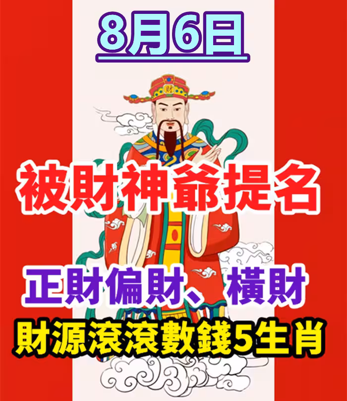 8月6日被財神爺提名,正財偏財、橫財,財源滾滾數錢的5生肖!