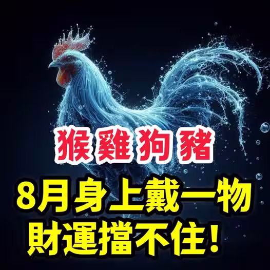 「屬猴、屬雞、屬狗、屬豬」8月身上戴一物,財運擋不住!