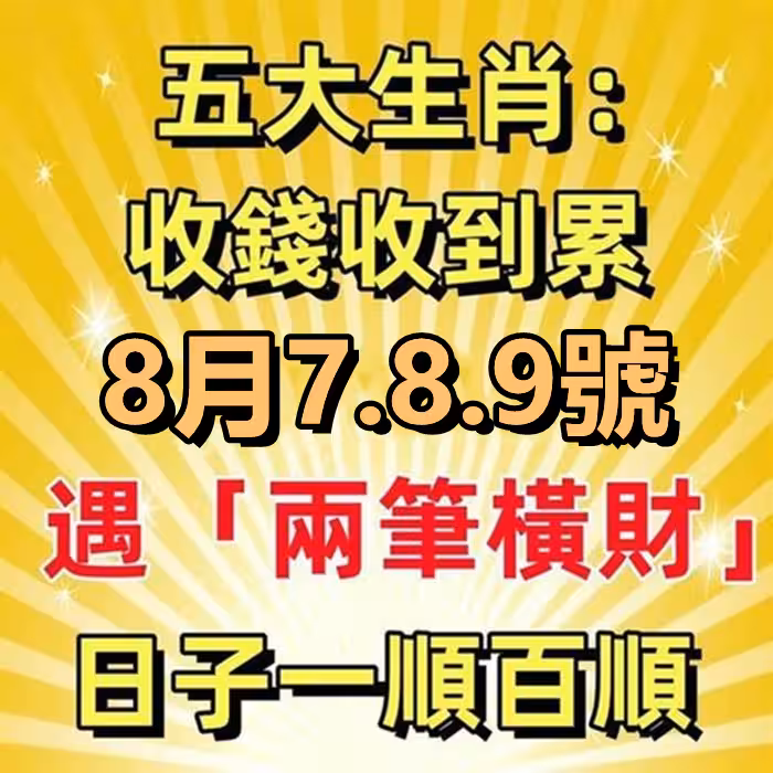 收錢收到累!8月7.8.9號遇「兩筆橫財」五大生肖日子一順百順