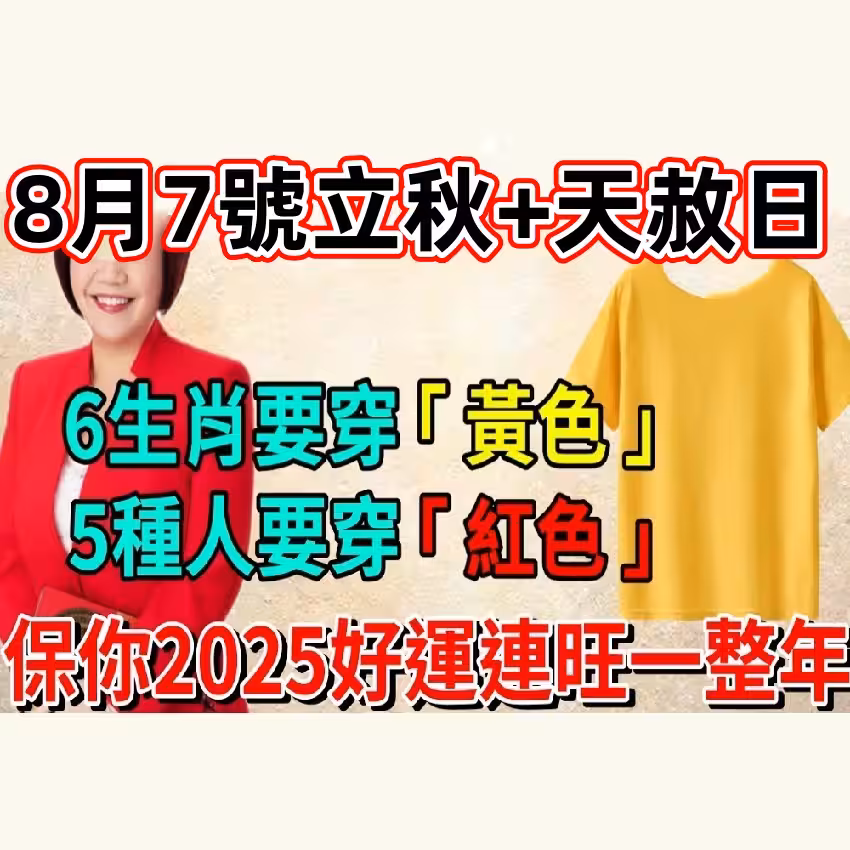8月7號立秋+天赦日,6生肖要穿黃色,5種人要穿紅色,保你平平安安災難消除!2025好運連旺一整年