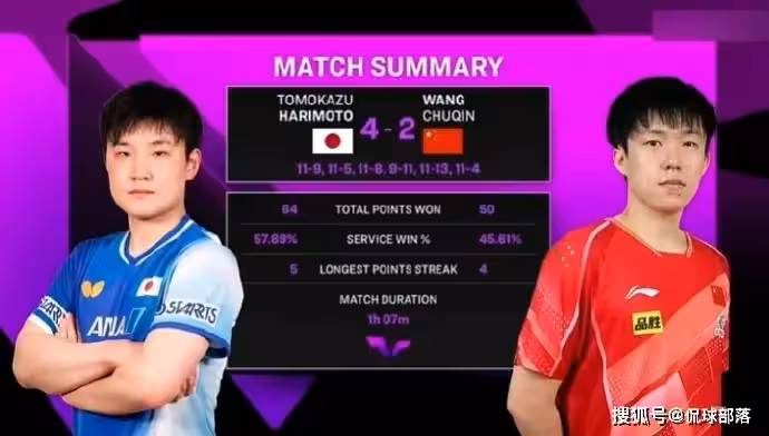 第六局,張本智和4-2領先時申請醫療暫停,比賽中斷了一會,隨後比賽恢復,王楚欽沒有找到比賽狀態,4-11再輸,無緣冠軍。