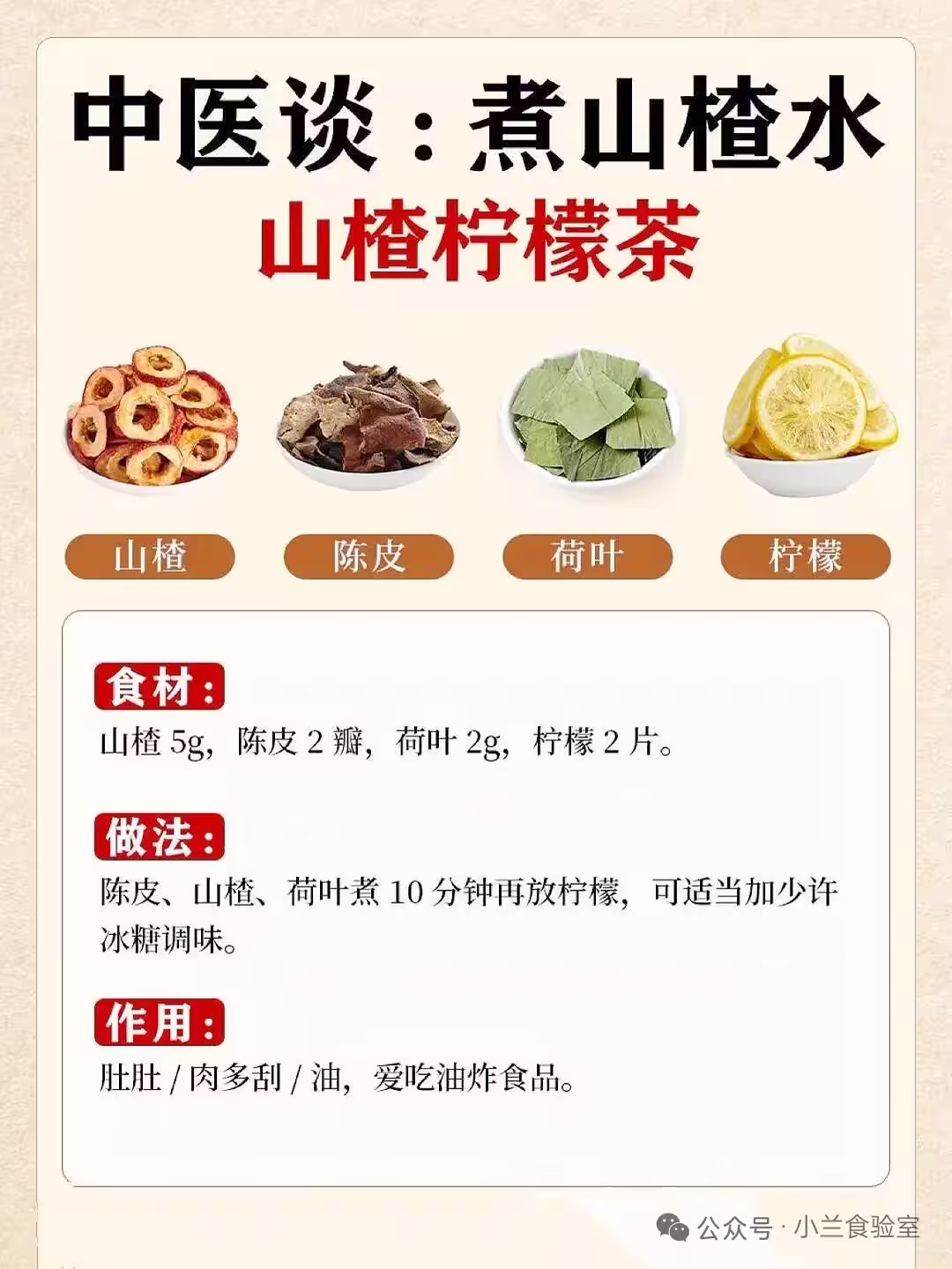 山楂5g、陳皮2瓣、荷葉2g、檸檬2片