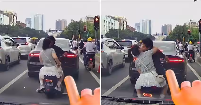 紅燈間隙「前機車男女」狂秀恩愛!綠燈一亮「下場」笑翻全網:報應來了