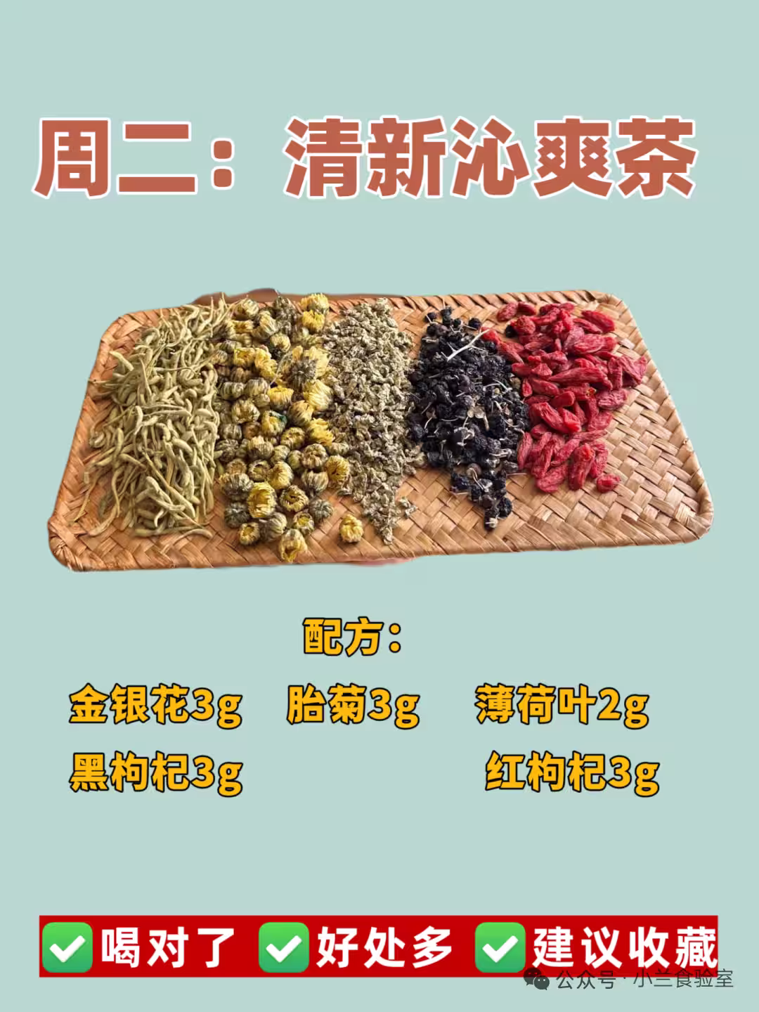 金銀花3g + 胎菊3g + 薄荷葉2g + 黑枸杞3g + 紅枸杞3g