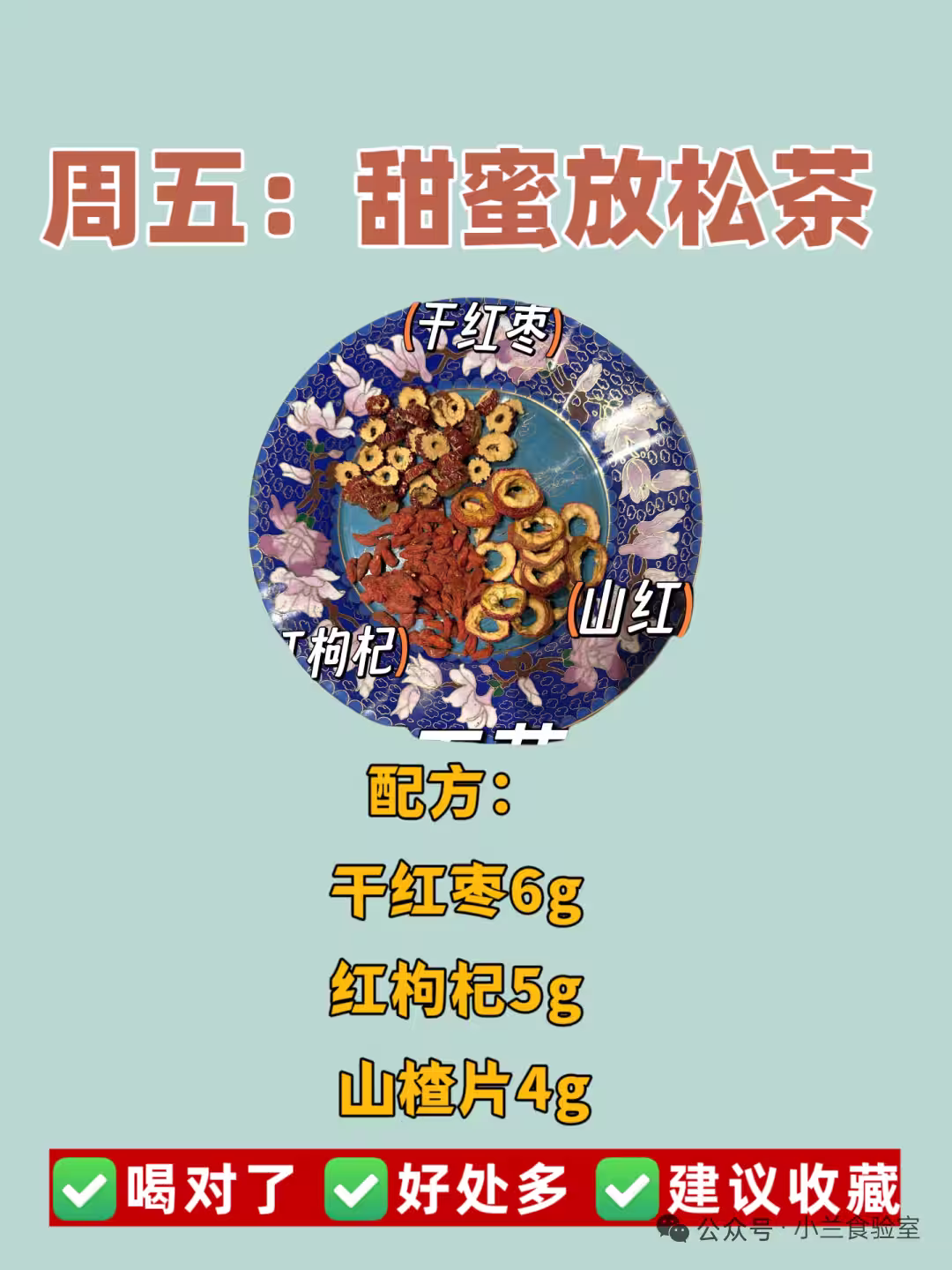 干紅棗6g(去核)+ 紅枸杞5g + 山楂片4g