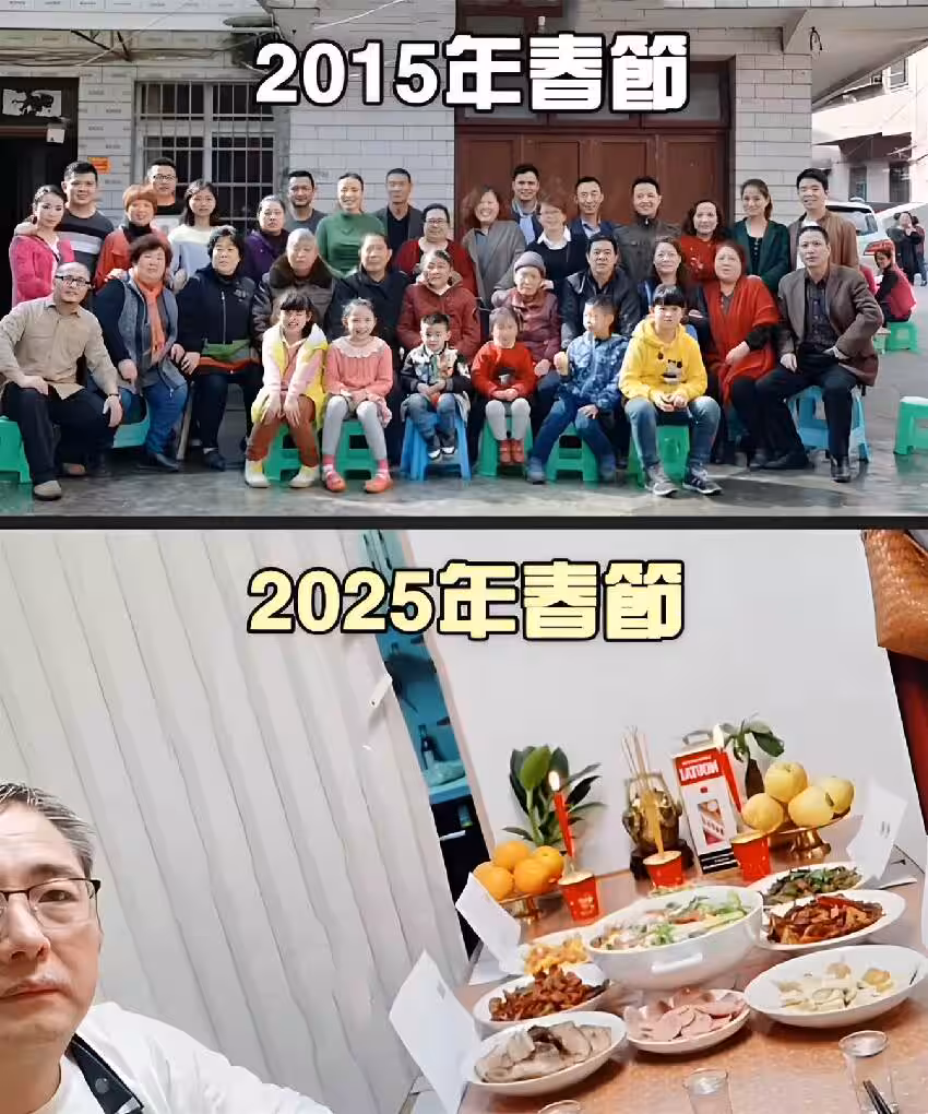 近日,一位網友在社交媒體上曬出了兩張春節家庭合影,分別是2015年和2025年的春節,這兩張照片引發了無數網友的共鳴和感慨。