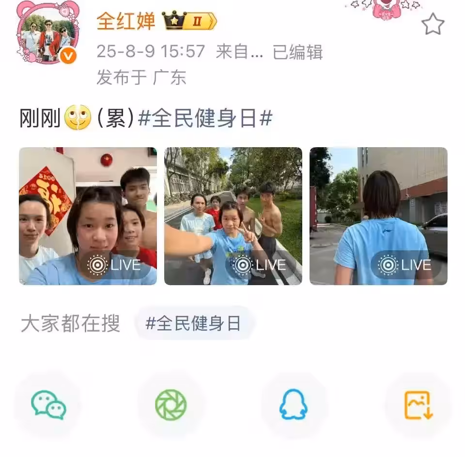 全紅嬋瘦了,曬與隊友大頭貼合照