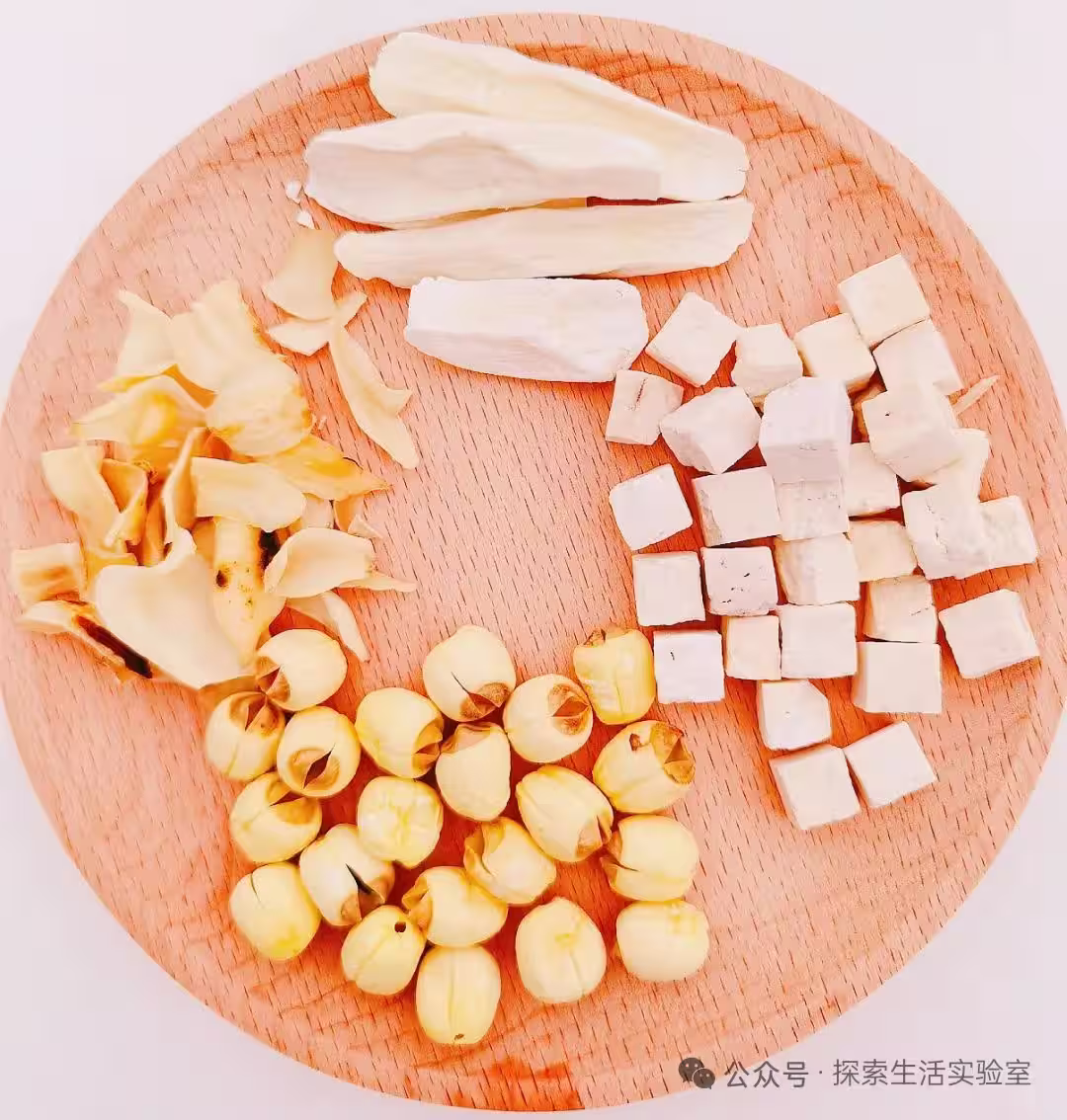 百合別買太白的,自然黃的才好,泡出來水發渾的是陳貨; 蓮子去芯時別用牙咬,用小刀劃開挑,不然苦水沾手上,洗半天還有味。