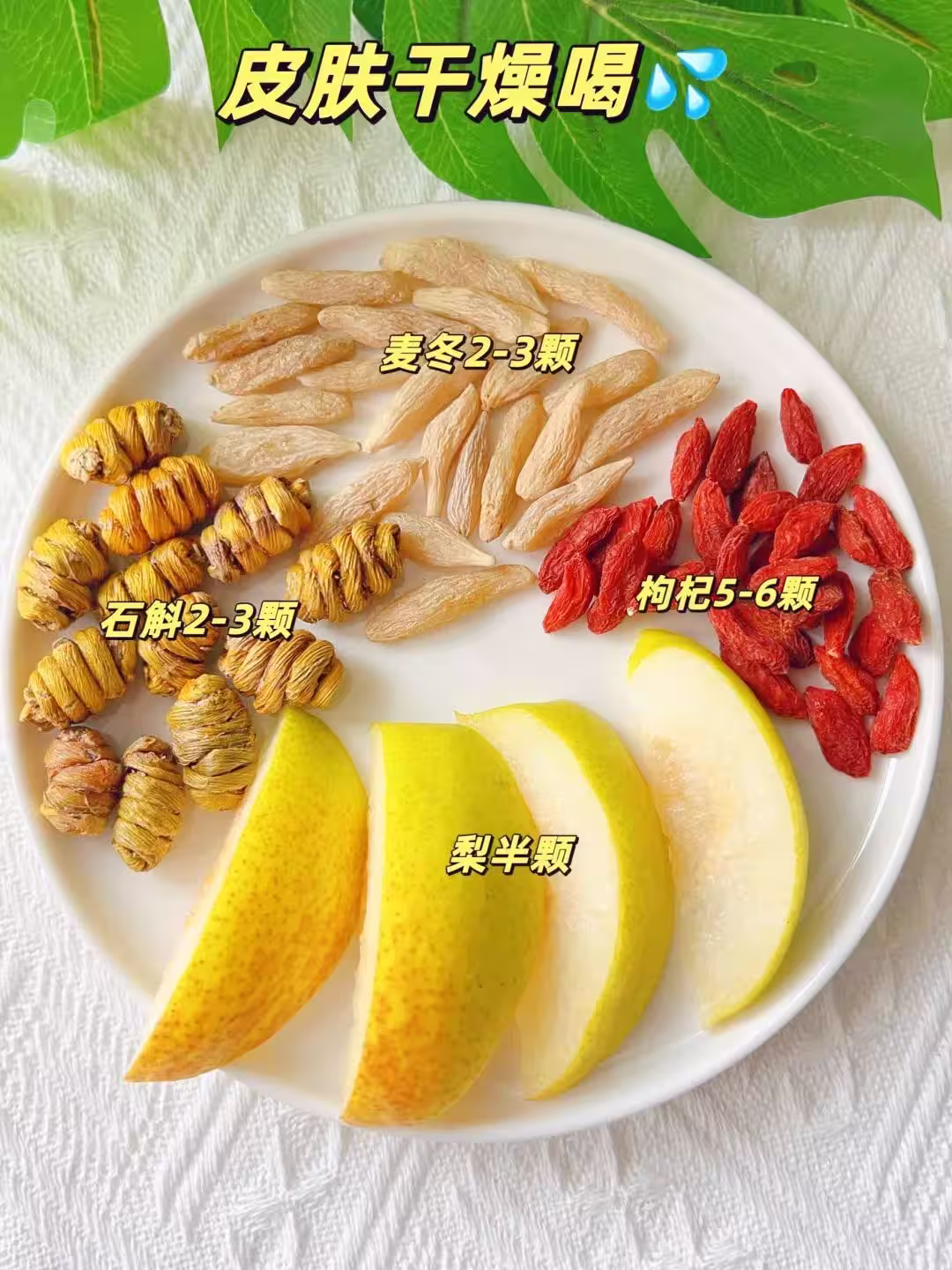 功效:石斛滋陰鎖水,麥冬潤肺生津,枸杞梨肉雙補維C,喝完喉嚨不幹、臉蛋嘭彈!💦