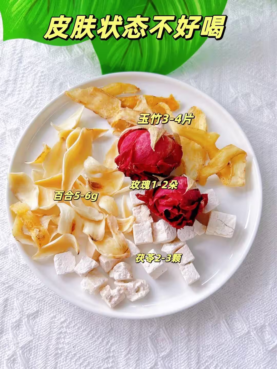 功效:玉竹百合潤肺抗燥,玫瑰茯苓排濁,痘痘、泛紅退退退! 皮膚像開了柔光濾鏡~