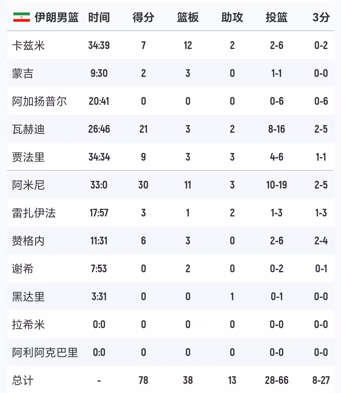 敗筆2,進攻端,台灣男籃在末節也出現了嚴重問題。整個第四節,球隊僅得到11分,而伊朗隊則轟出26-11的凌厲攻勢。在比賽最後3分鐘,林庭謙錯失超遠三分絕平機會,陳盈駿關鍵球選擇失誤,賀丹連續強行突破失誤,一次次錯失追分良機。媒體批評球隊「過度依賴賀丹的個人英雄球」,缺乏團隊配合意識,這也導致球隊進攻效率驟降,無法在關鍵時刻得分。