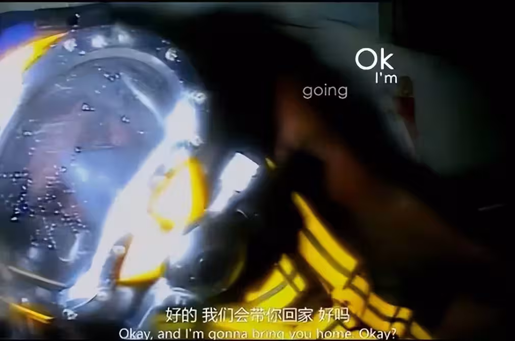 接著將他送入潛水鐘與海底同壓區,緩緩升出海面。