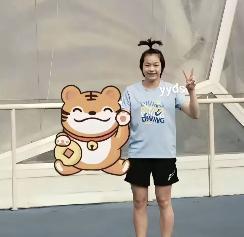 該網友表示,全紅嬋扎著標誌性的朝天辮,穿著淺藍色T恤和黑色短褲,肉眼可見的「又瘦了一圈」,手臂線條更利落,小腿肌肉都透著「剛拼完高強度訓練」的緊繃感。她當時站著比耶,跟隊友們互動拍照,笑容還是甜甜的。