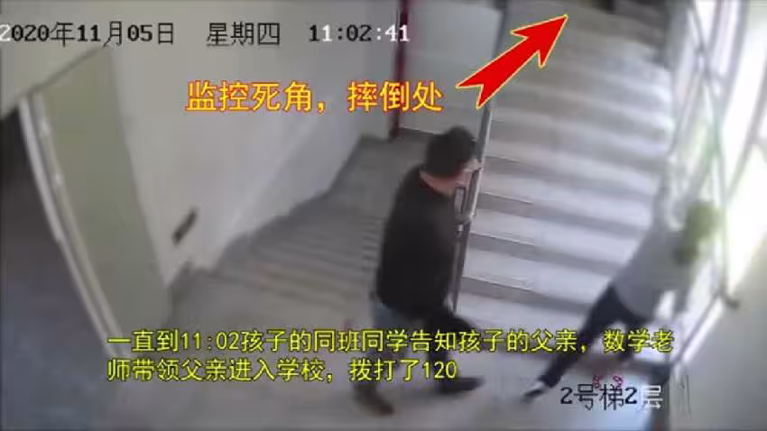 男童的母親事後痛訴老師沒有在事發第一時間通知家長,當下也沒有給予任何急救措施,校方甚至只給出部分監視器影像,不讓家屬看到男童摔倒的關鍵畫面,是後來詢問同學才知道男童摔到後腦。
