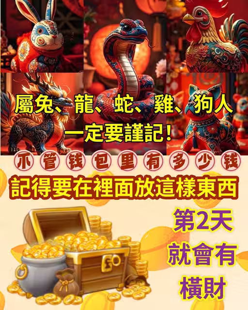 屬兔、龍、蛇、雞、狗人一定要謹記!不管錢包里有多少錢,記得要在裡面放這樣東西,第2天就會有橫財!