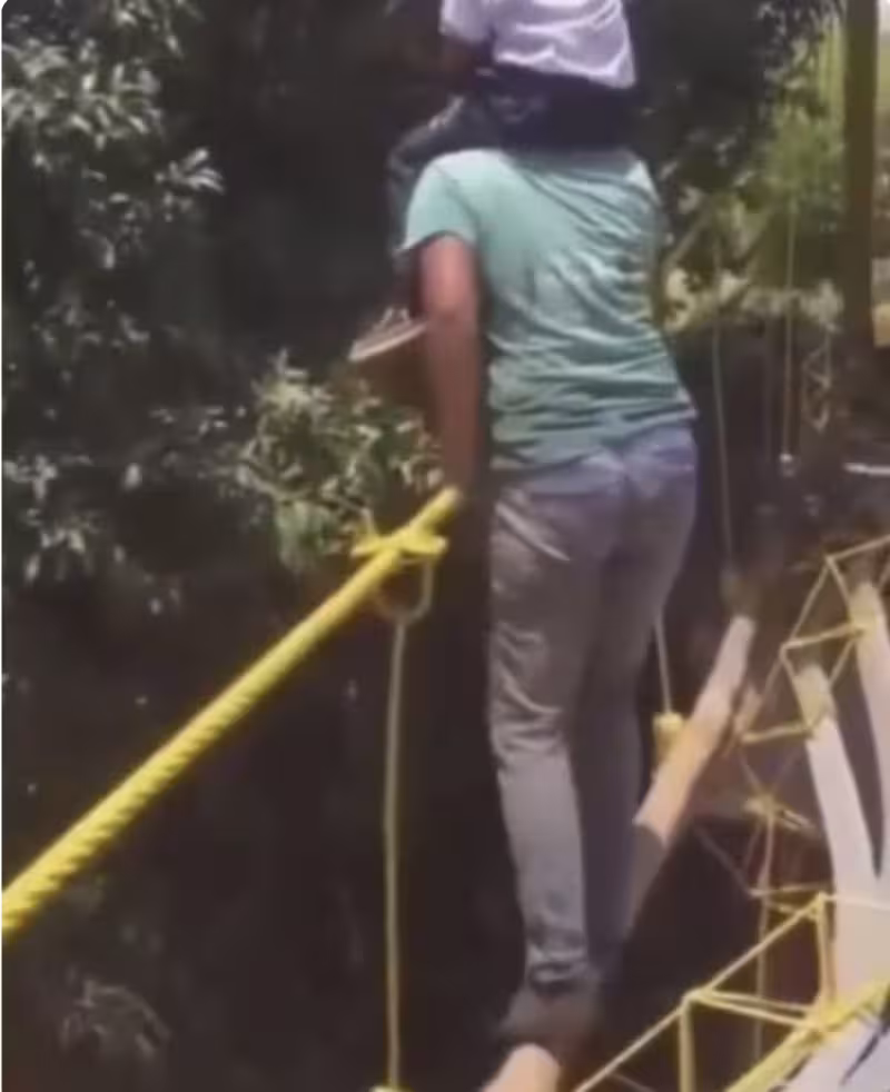 她抱兒坐肩上走獨木橋,媽「腳滑踩空」男童下秒慘墜溪谷:實時影片瘋傳