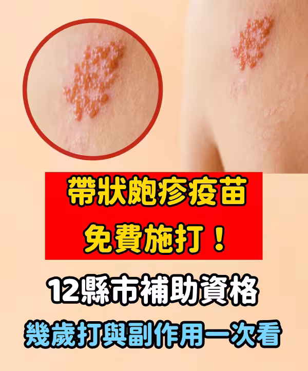 帶狀皰疹疫苗免費施打!12縣市補助資格、幾歲打與副作用一次看