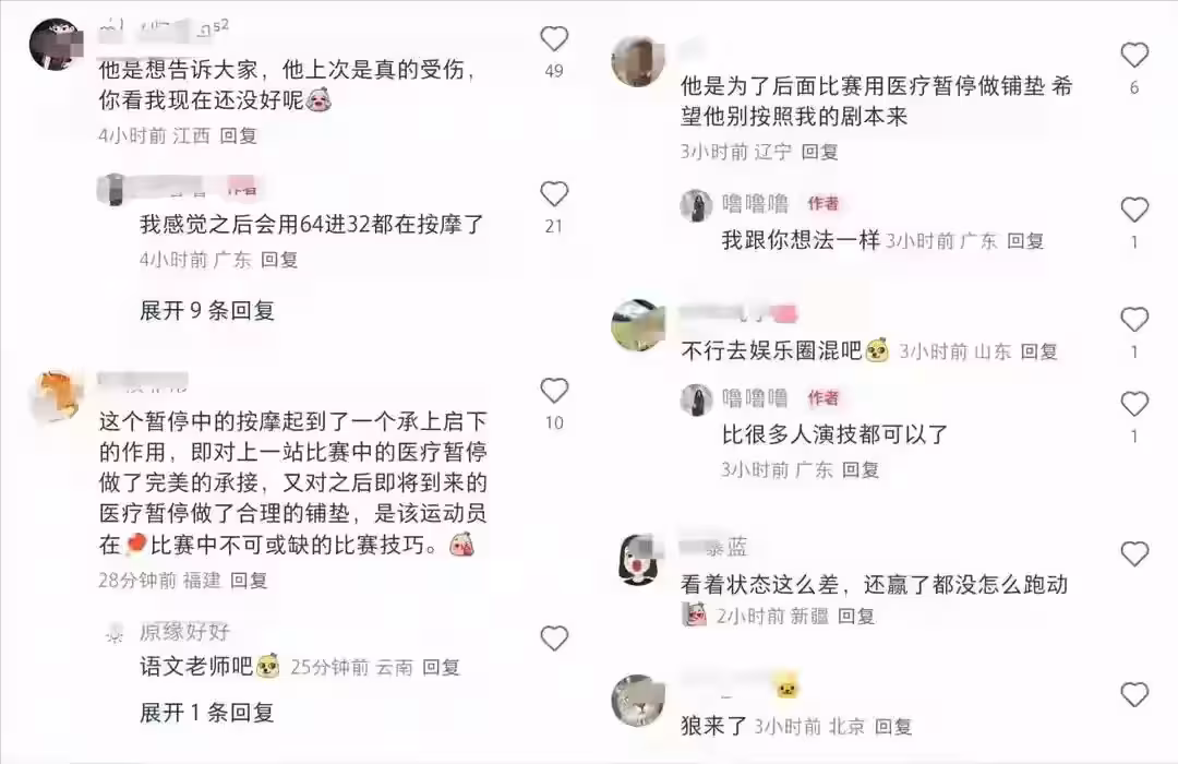 其實明眼人都看得出來,問題出在規則太寬鬆。現在球員說受傷就受傷,教練還能借著暫停進場指導戰術,這不是變相鼓勵鑽空子嗎?張本賽後還振振有詞:"王楚欽換衣服耽誤時間",可人家換衣服是在規則允許的局間休息,哪像他的暫停直接打斷比賽節奏。難怪瑞典選手莫雷加德都看不下去了:"靠這種招數贏球,還不如直接認輸"。