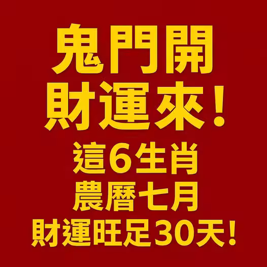 鬼門開不一定只有恐懼,對某些人來說,這正是財星高照的好時機! 農曆七月,陰陽能量交替,有些生肖反而會得到「財神爺」暗中庇佑,不僅正財穩穩進帳,偏財也驚喜不斷!快來看看有沒有你吧!