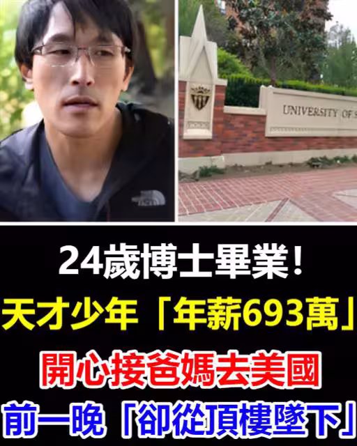 24歲博士畢業!天才少年「年薪693萬」,開心接爸媽去美國「前一晚卻從頂樓墜下」
