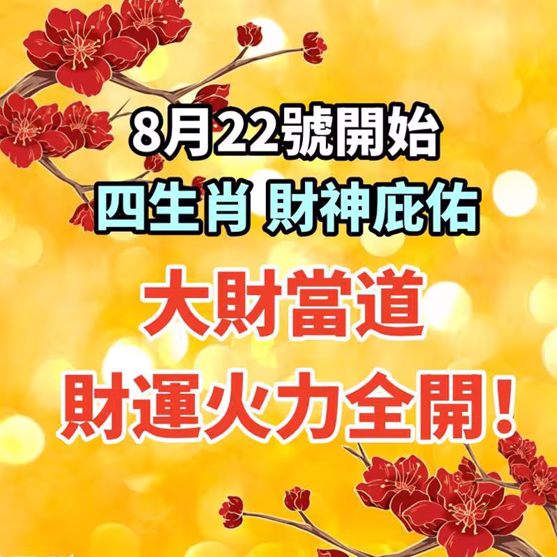 8月22號開始, 四生肖財神庇佑,大財當道!