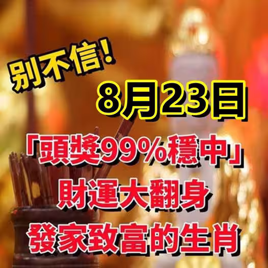 8月23日(農暦七月初一)頭獎99%穩中,財運大翻身,發家致富的生肖