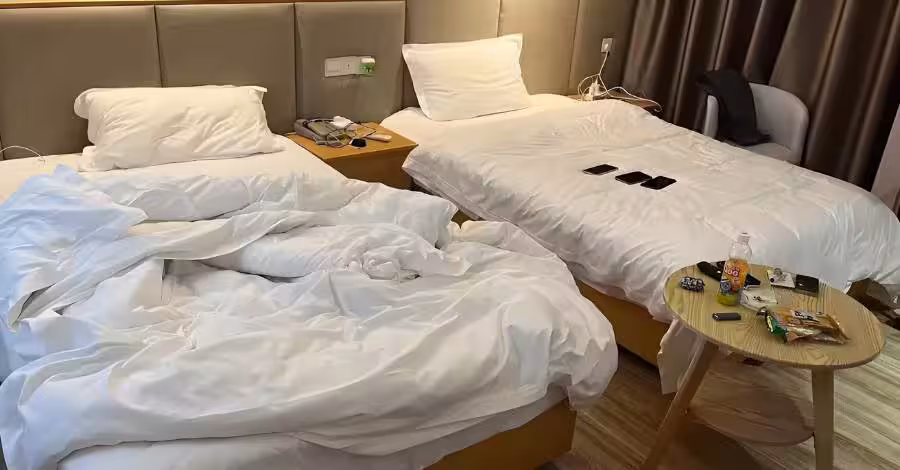 深夜十一點,手機「叮」地一響,是老公陳銘發來的消息。一張酒店房間的照片,配文:「寶貝,安全到了,準備洗洗睡了,想你。」這似乎是他出差時的例行報備,體貼又令人安心。我笑著點開大圖,想看看他這次住的酒店環境。房間標準整潔,床鋪雪白,床頭燈散發著暖光。我的目光隨意掃過,卻在掠過書桌時猛地定格——心裡「咯噔」一下,像被什麼東西猝不及防地刺中了。